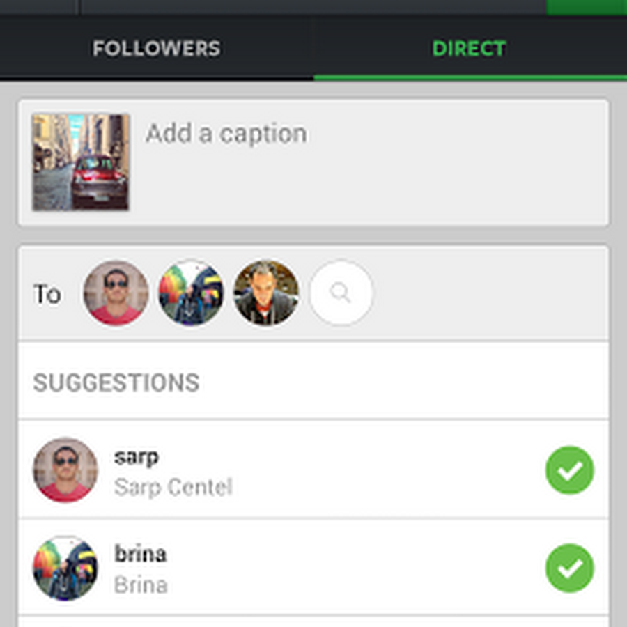 "direct" selezionando quindi con quale dei vostri amici condividere la foto (o il video) in questione. Anche con la funzione