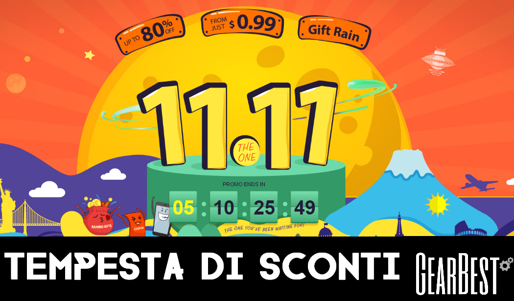 Conto alla rovescia su GearBest in attesa che arrivi l' 11 novembre, nel quale ci sarà la tempesta di offerte “sale storm”. Lo store cinese non si fa trovare impreparato, e ha riservato ai suoi clienti numerosi sconti e concorsi. In questo articolo ci premuriamo di segnalarvi le offerte più vantaggiose, ma prima vogliamo ricordarvi le diverse iniziative offerte:
