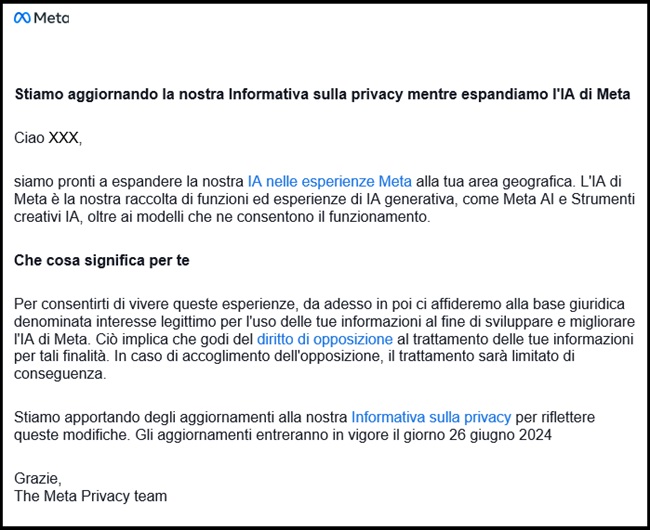 Da poco tempo è arrivata una nuova informativa della privacy che riguarda il gruppo Meta (Facebook e Instagram principalmente) che sta introducendo la possibilità di allenare l'intelligenza artificiale sulle immagini che postano gli utenti su questi due social network.